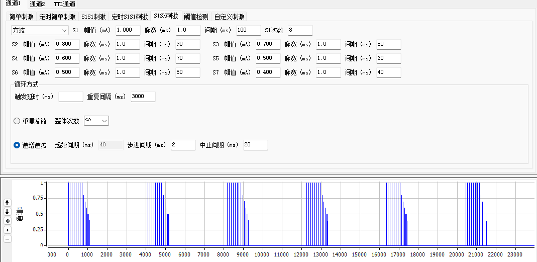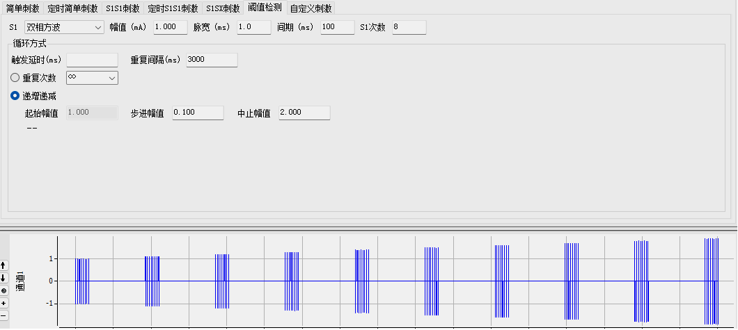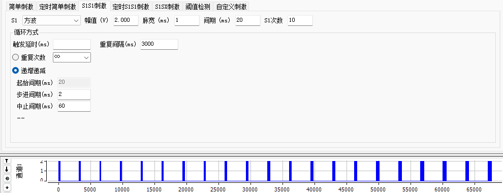 2.S1S1刺激 、定时SISI刺激; 重复刺激、递增递减刺激